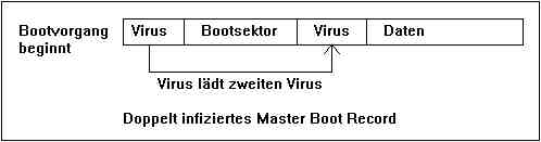 zwei unterschiedlichen Bootsektor-Viren nacheinander infiziert wird. Passiert